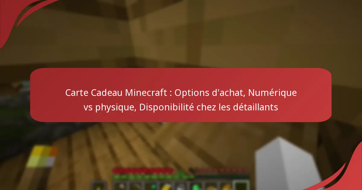 Les cartes-cadeaux Minecraft peuvent être achetées en deux formats principaux : numérique et physique. Chaque option a ses propres avantages, et le choix dépend des préférences personnelles et de la commodité.